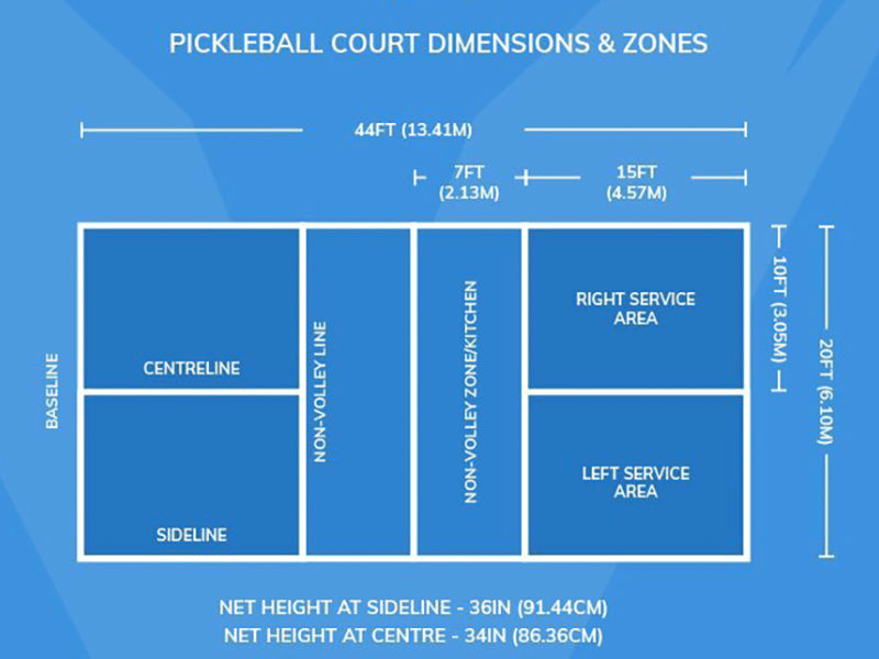 Sân pickleball được thiết kế với kích thước tiêu chuẩn được quy định bởi tổ chức Liên đoàn Pickleball quốc tế (IFP). Kích thước này được áp dụng cho tất cả các mặt sân các khu vực, kể cả khu vực thi đấu hay sân chơi thông thường.